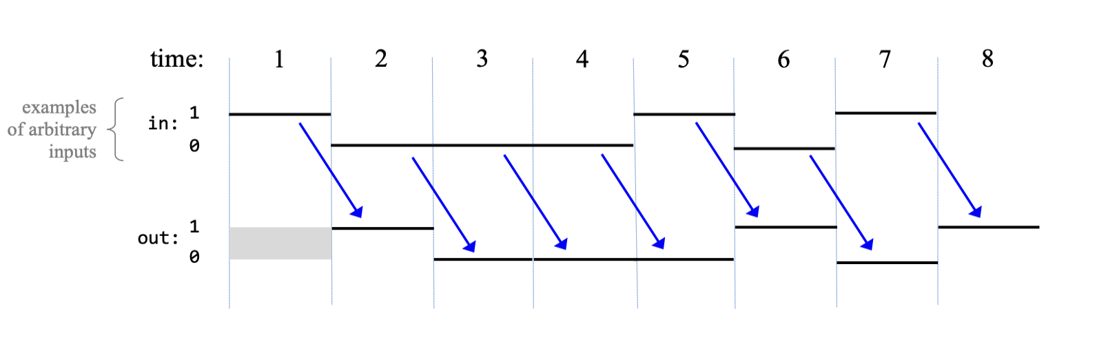 - 当load=1,寄存器执行加载的动作,意思是要加载当前的输入作为新数据,作为下一个时间段的输出。